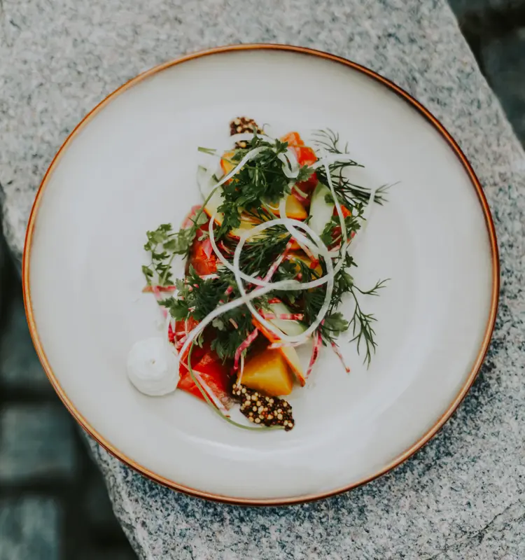 Genom att i största möjliga mån samarbeta med lokala producenter minskar vi onödiga transporter och stärker det närliggande jordbruket. Menyn formas efter tillgång, där grönsaker ofta står i centrum och kompletteras med noga utvalt protein. Vår ambition är att lyfta fram fler vegetariska alternativ, utan att kompromissa med smak och kreativitet.