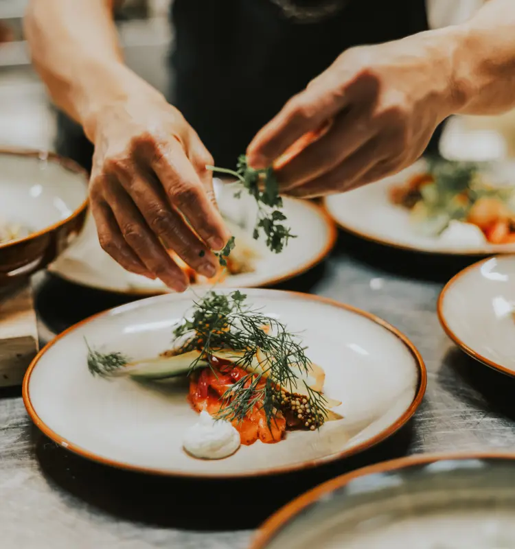På Orangeriet skapar vi vällagad mat med råvaror från Bjäres rika skafferi, där kvalitet och hållbarhet går hand i hand. Vår matfilosofi bygger på närproducerade ingredienser och säsongens skiftningar, där vi strävar efter att varje tallrik ska innehålla något från Norrvikens egna trädgårdar – från jord till bord.