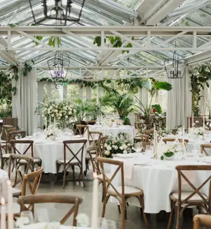 Ett hus av glas omgivet av grönska, där ljuset dansar genom väggarna och skapar en magisk inramning för er vigsel – oavsett årstid. Victoriahuset är en plats där skönhet, värme och romantik möts i en perfekt harmoni - en idealisk inramning för ett oförglömligt löfte. Här kan vi möblera med stolar för upp till 120 gäster.