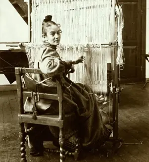 May Morris (1862–1938) var en framstående brittisk textilkonstnär och en nyckelfigur inom Arts and Crafts-rörelsen. Som dotter till William Morris ledde hon broderiavdelningen på Morris & Co redan vid 23 års ålder och var en pionjär i att lyfta broderi till en erkänd konstform. Hennes arbete präglades av harmoniska färger, eleganta detaljer och inspiration från naturen, där blommor och lövverk ofta förekom. Hon var också en engagerad förespråkare för kvinnliga konstnärer och undervisade i textilkonst.
