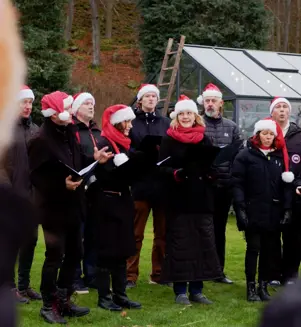 Julens toner fyller luften när körsången sprider stämning i trädgården. Välkända melodier och varma röster skapar en musikalisk inramning som hör julen till.
