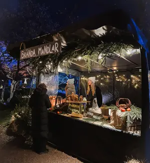 Runt om i parken väntar dofter, smaker och hantverk. Upptäck unika julklappar och personliga fynd bland glaskonst, keramik, smycken och blomsterkit. Här hittar du även fårskinn, brända mandlar, oliver och annat smått och gott som hör julen till.