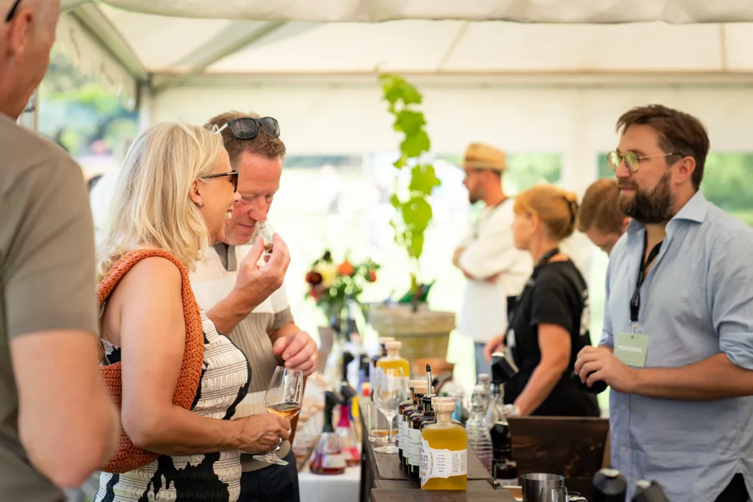 Här strosar du mellan dofter, smaker och möten med människorna bakom produkterna – i en avslappnad festivalmiljö där det är lika naturligt att slå sig ner med något gott i glaset som att fylla kassen med delikatesser till sensommarens middagar.