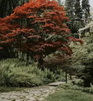 Växtval: Blodlönn, japansk hängbok, katsura och vresbok.